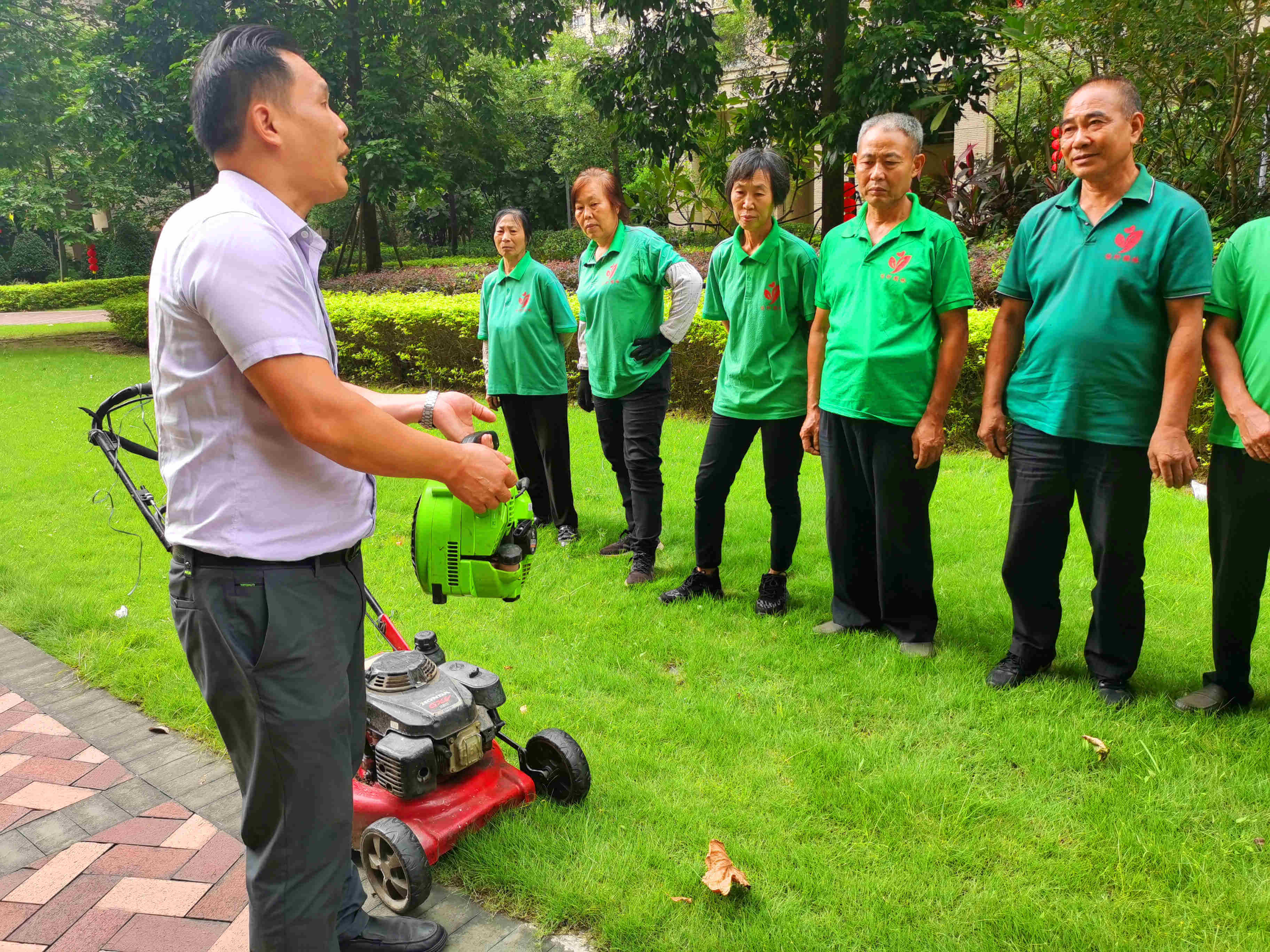 广东怡轩园林绿化公司对小区驻场绿化工人展开夏季的养护培训