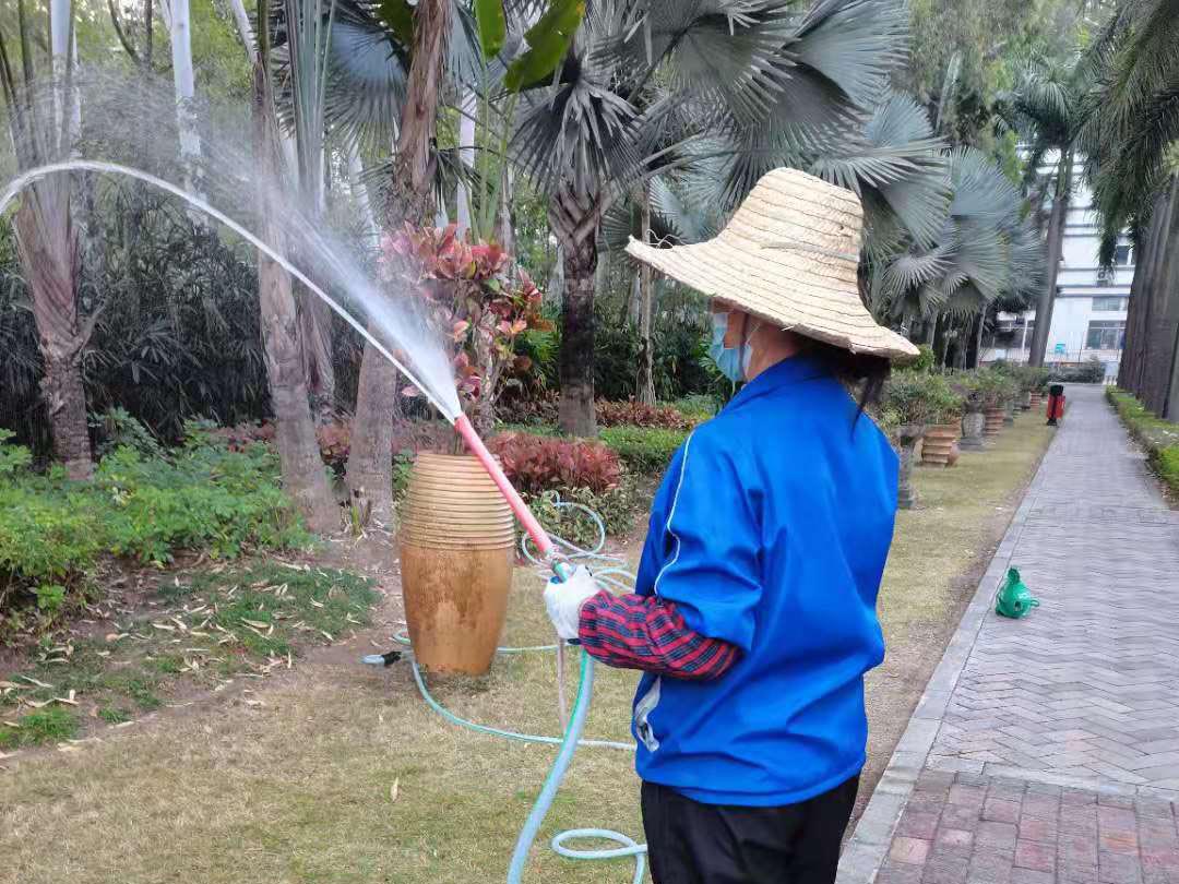 2.小区绿化养护春灌:春季雨水多,但也常出现干旱风多,水份蒸发量大不下雨的情况下对绿地及时浇水保持土壤湿润。
